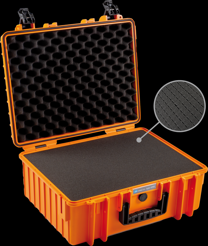 B&W outdoorový kufr typ 6000, s předřezanou pěnovou výplní, oranžový |
