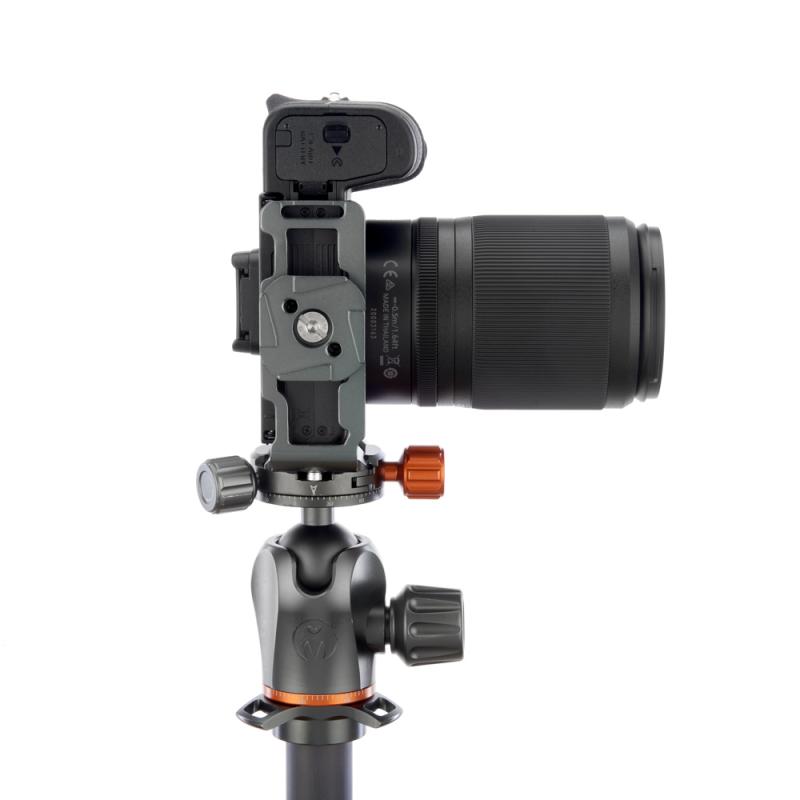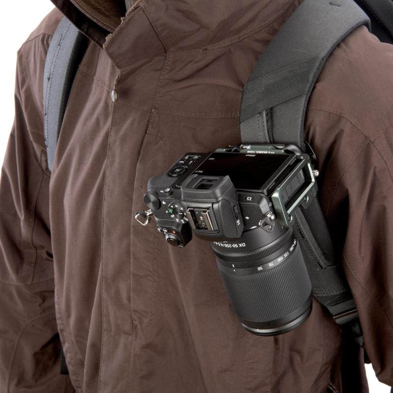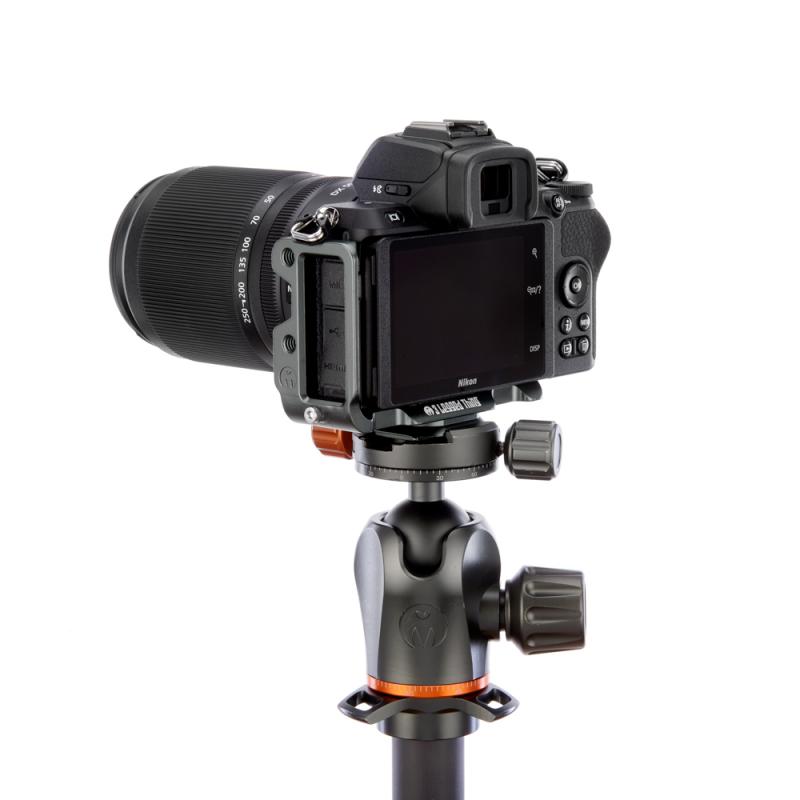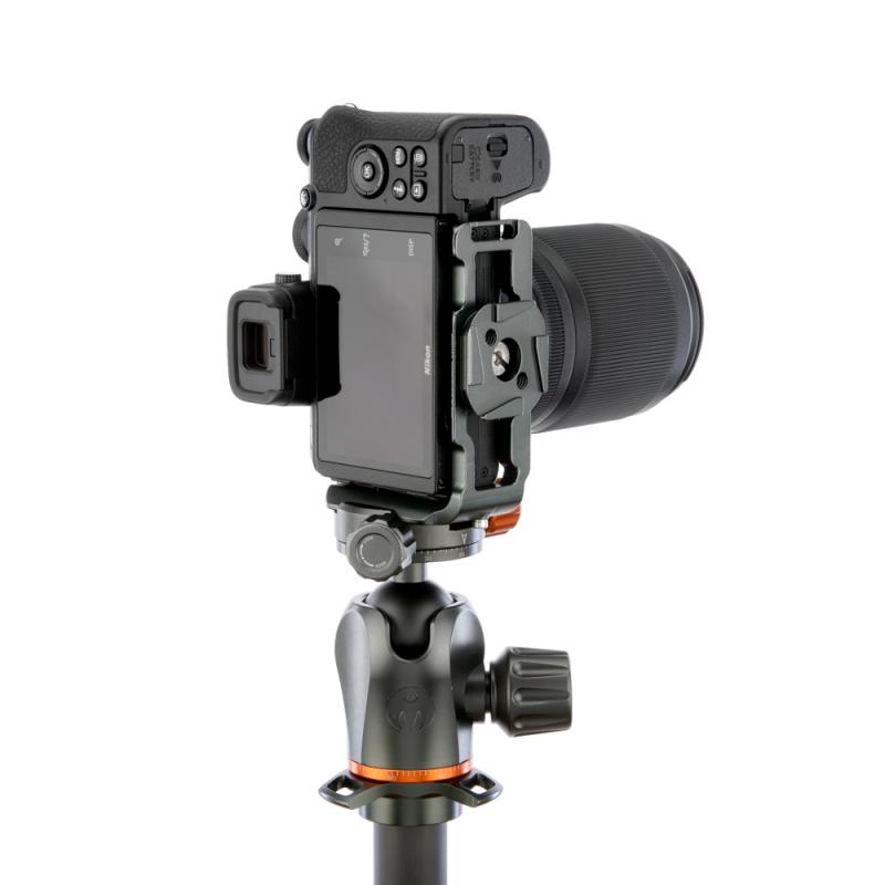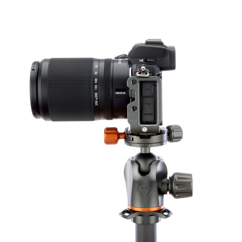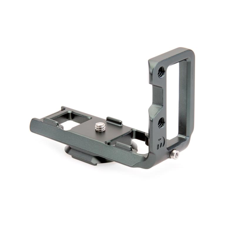 Hliníková destička ve tvaru L je určená pro fotoaparát Nikon Z50 a přístroj k ní lze připojit pomocí 1/4" závitu. Je vyrobená z jednoho kusu kovu, a je proto velmi odolná. S pomocí destičky můžete fotoaparát upevnit na svorku či hlavu kompatibilní se systémem Arca Swiss, a to v horizontální, nebo vertikální poloze, a také ke klipsu Peak Design Capture V3. Díky protiskluzovým částem je tělo ochráněné před pohybem, zatímco ho k destičce upevňujete. Destička umožňuje příštup k paměťové kartě, baterii a postranním portům, stejně jako ke všem tlačítkům a displeji. Zároveň k destičce můžete připnout popruh, a to buď pomocí 1/4" patice, nebo integrovaného očka.