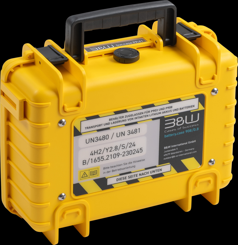 B&W outdoorový kufr Battery.case P908.8 pro transport a úschovu vibitých lithiových baterií, žlutý