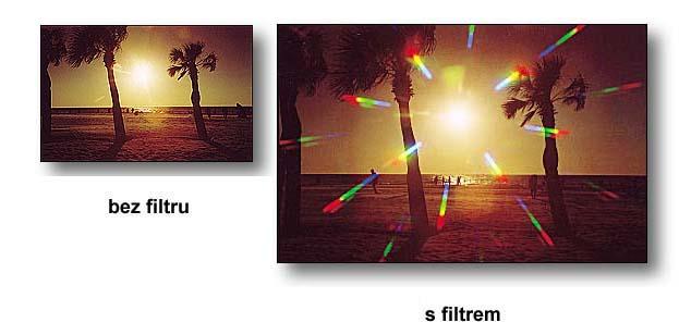 Filtr vytvoří nejen paprsky kolem světelného zdroje, ale tyto paprsky také rozloží do barev spektra