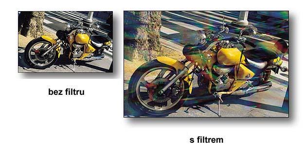 Filtr vytvoří nejen paprsky kolem světelného zdroje, ale tyto paprsky také rozloží do barev spektra