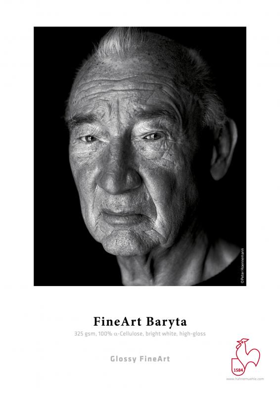 Hahnemühle FineArt Baryta je umělecký papír na bázi bílé celulózy s povlakem speciálně upraveným pro použití ve FineArt. Zřetelně viditelná plstěná struktura propůjčuje papíru strukturu textilního povrchu, která vytváří tisky v trojrozměrné kvalitě.