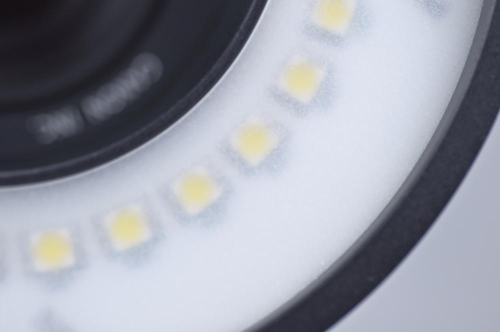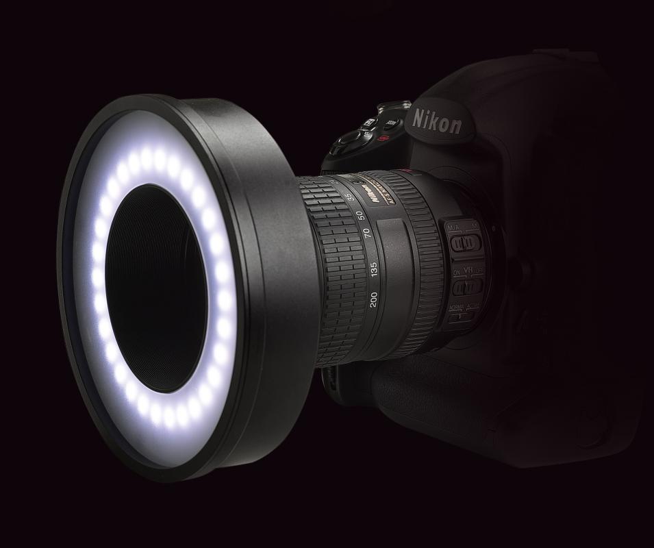 Profesionální kruhové světlo s 30 tříčipovými vysoce výkonnými LED (CRI = 94). Osvětlení přibližně 2100 Lux ve vzdálenosti 30 cm. Extrémně široký úhel paprsku 110 ° (úhel poloviční hodnoty) V pouzdru svítidla z vysoce stabilního duralu je integrována dobíjecí lithium-iontová baterie a kompletní elektronika. Lampa je nekonečně stmívatelná. Přípojka pro montáž na základnu pro závit filtru 77 mm, včetně redukčních kroužků - adaptérů od 52 do 72 mm. Kruhové světlo lze také namontovat na stativ, mimo objektiv. Elektronické řízení do konstantního jasu i při klesajícím napájecím napětí. Automatické vypnutí při příliš nízkém napětí, aby nedošlo k hlubokému vybití a poškození baterie.