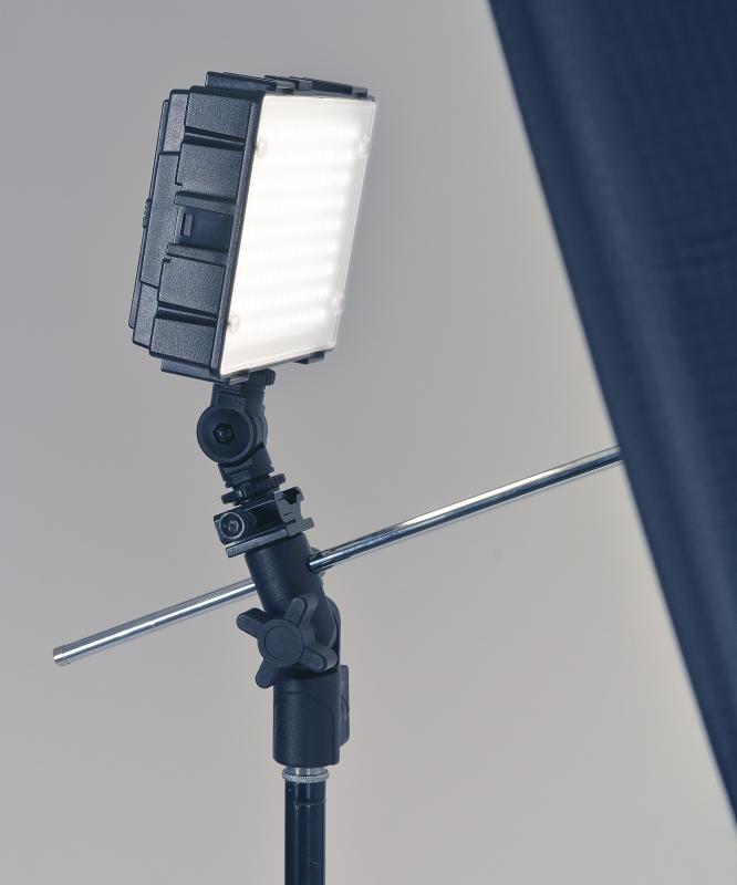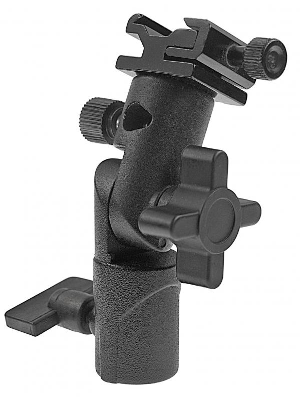 Kovový kloub pro upevnění blesků, svítidel a příslušenství se standardními ISO upevňovacími patkami na stativy a držáky se standardními čepy 16 mm nebo pomocí dodaného adaptéru pro připojovací závity 1/4 "nebo 3/8".