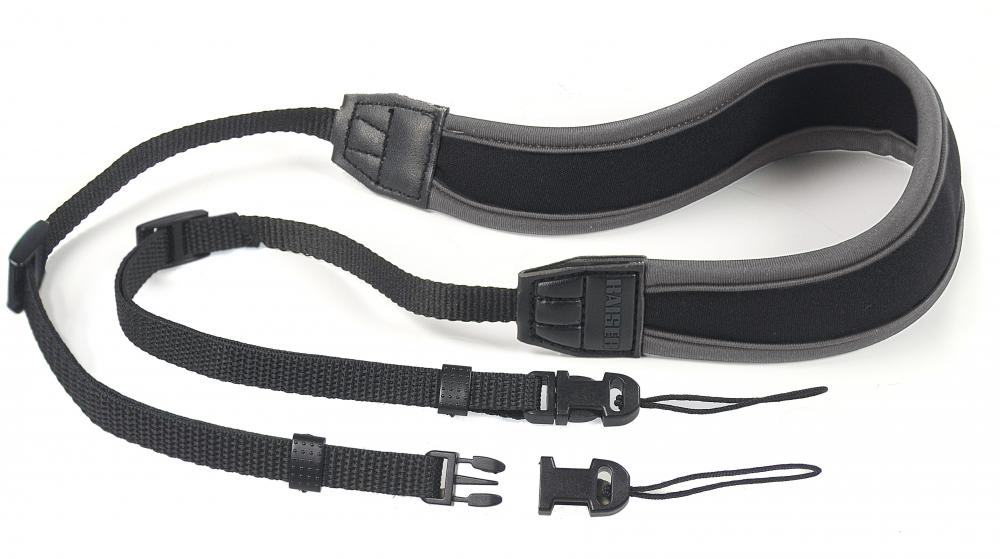 Ramenní podložka z elastického neoprenu, okraje lemované látkou. Vysoký komfort nošení. Zakřivený, ergonomicky sedí na rameni / krku. Nastavitelná délka.