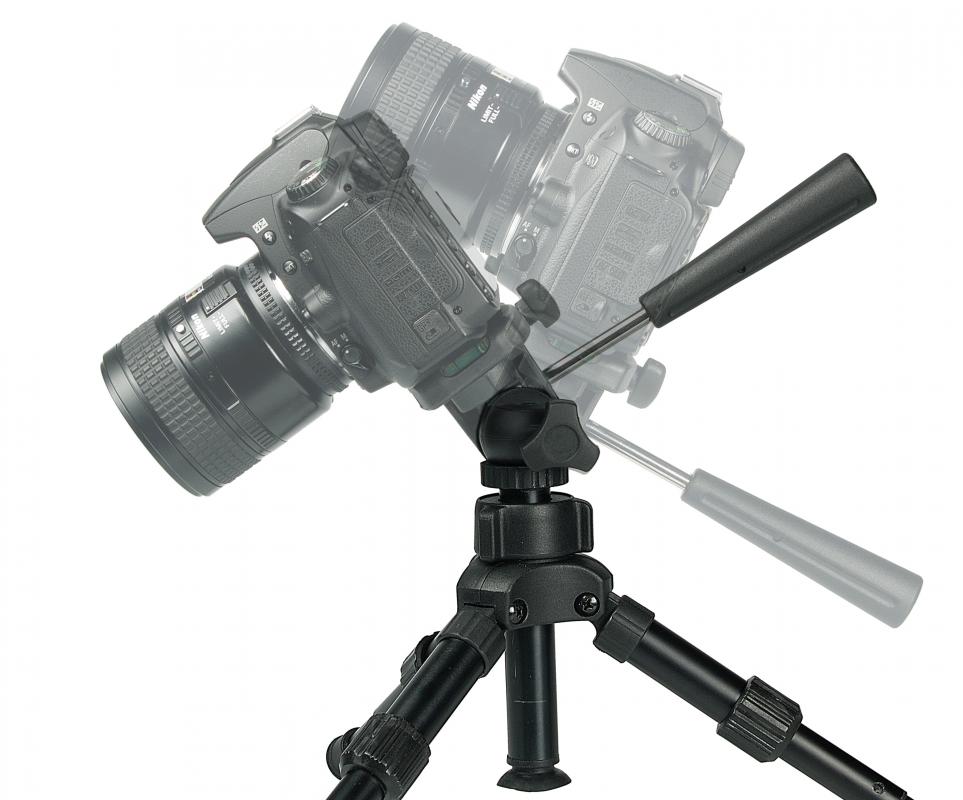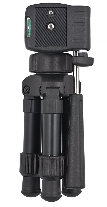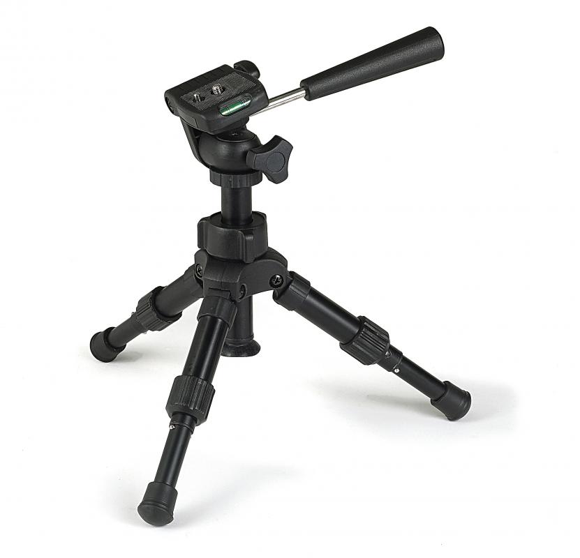 S dvojitýma výsuvnýma teleskopickýma nohama a výsuvným středovým sloupkem. Naklápěcí hlava s otočnou montážní destičkou pro fotografování krajiny nebo portrétu. Vestavěná vodováha pro přesné vyrovnání. Přísavka na středním sloupku poskytuje zvláštní podporu na rovných a hladkých površích v nejnižší poloze stojanu. Závit pro připojení kamery B 1/4. vč. kufříku.