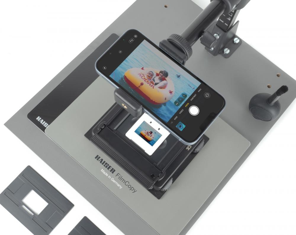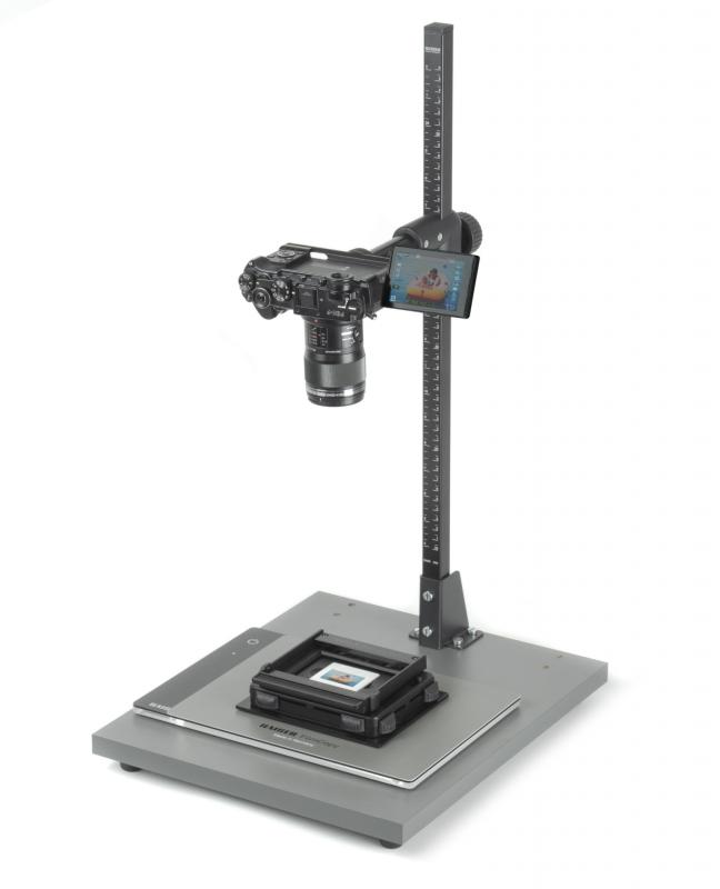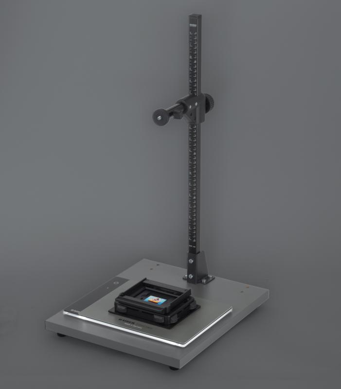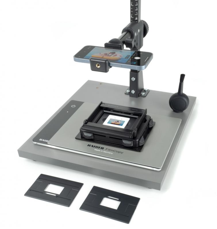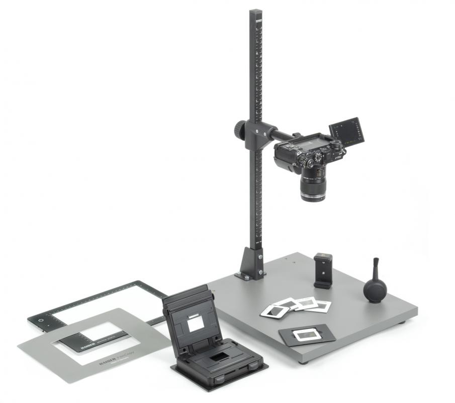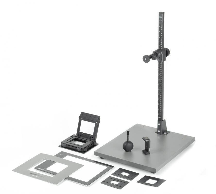 Startovací sada pro digitalizaci 35 mm filmů. Sada obsahuje: reprokit Copy Stand (5361) - FilmCopy Vario Kit (2458); FilmCopy Vario Holding Device (2457), vč. Format Mask pro slidy 35 mm slides (4489), a dvě Format Masks 24 x 36 mm (4486) a Overlay Mat a slimlite plano Light Box (2453) - Smartphone Mount (6015) - Blower Brush (6311)