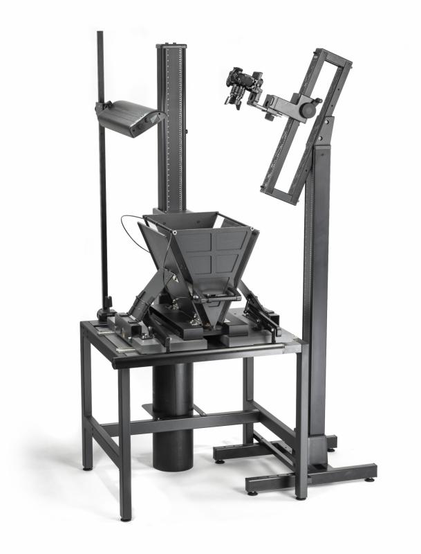 Wolfenbüttel Book Reflector 45N - pro digitální reprodukci poškoditelných historických knih a dokumentů v kritickém stavu, speciálně pro knihy, které nemohou být otevřeny o více než 45°, max. velikost knihy / stránky je 450 x 450 mm. vč. kamerového stativu