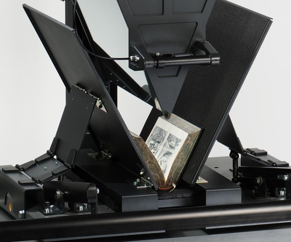 Zařízení pro retrodigitalizaci citlivých historických knih a dokumentů v kritickém stavu, zejména u knih, které nelze otevřít více než 45°. Všechny pojezdové cesty jsou pro maximální ochranu knihy prováděny ručně.