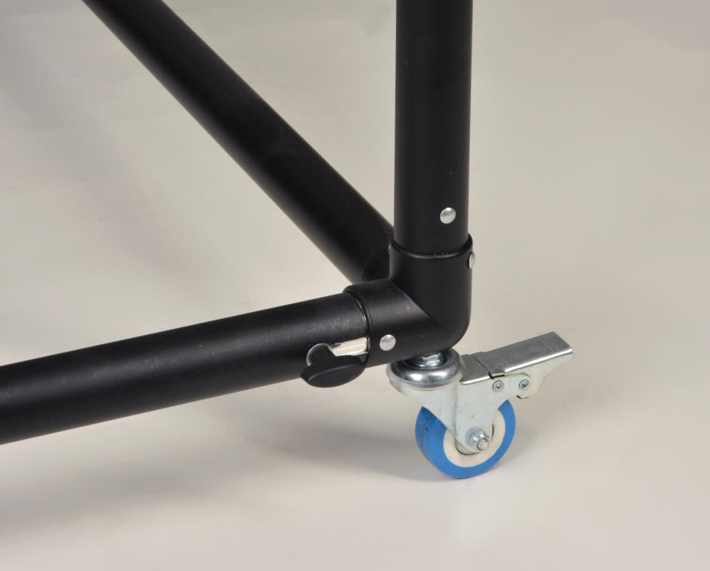 Robustní hliníkový rám se čtyřmi uzamykatelnými kolečky.