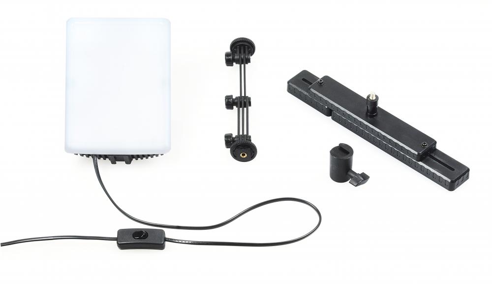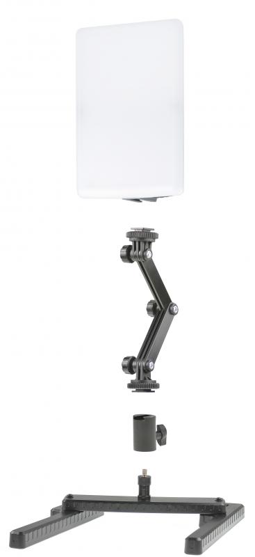 Kompaktní LED denní světlo pro měkké a rovnoměrné osvětlení. S 96 vysoce svítivými CRI LED v tenkém pouzdře. Kloubové rameno se 3 zajišťovacími klouby a variabilní základnou.