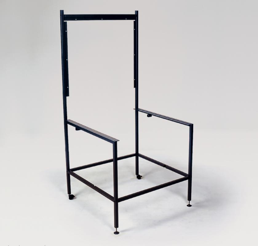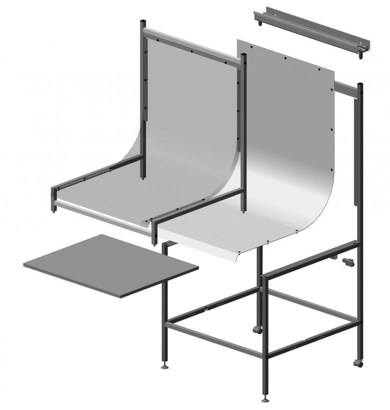 Robustní rám vyrobený ze trubek čvercového profilu, vpředu výškově nastavitelné nohy, vzadu s uzamykatelná kolečka. Možnosti montáže osvětlovacího zařízení jak pro nasvícení shora tak pro podsvícení.