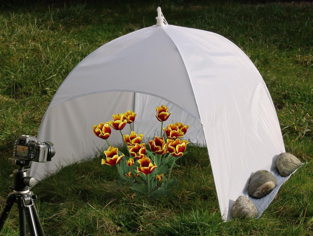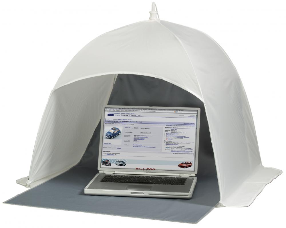 Pro fotografování malých předmětů.Ideální pro internetové obrázky a záběry předmětů.Bílé, průsvitné stěny vytvářejí jednotné měkké osvětlení.Velmi snadná montáž a demontáž pomocí deštníkové mechaniky.