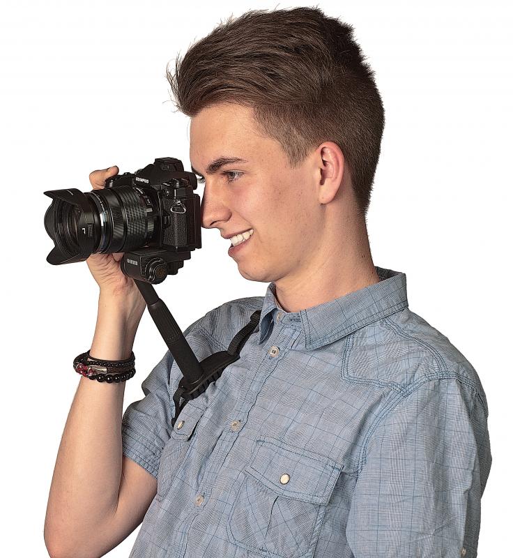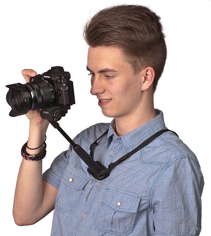 Stativ může být na videokameře připevněn na rovnou plochu. Nastavitelný popruh.