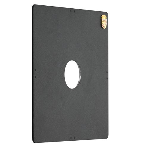 Kardan destička s otvorem velikosti 0, 126x126 mm. Centrální otvor 26,6mm, pro objektivy s ohniskovou vzáleností f 90mm a větší.